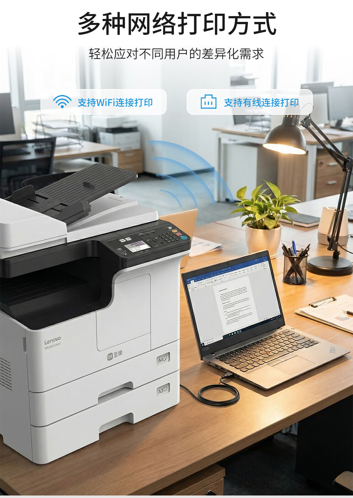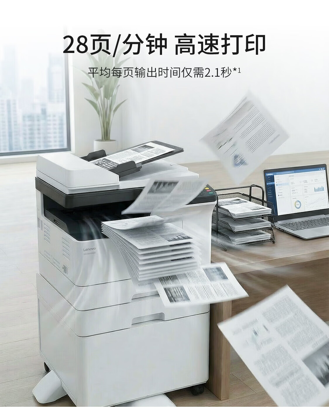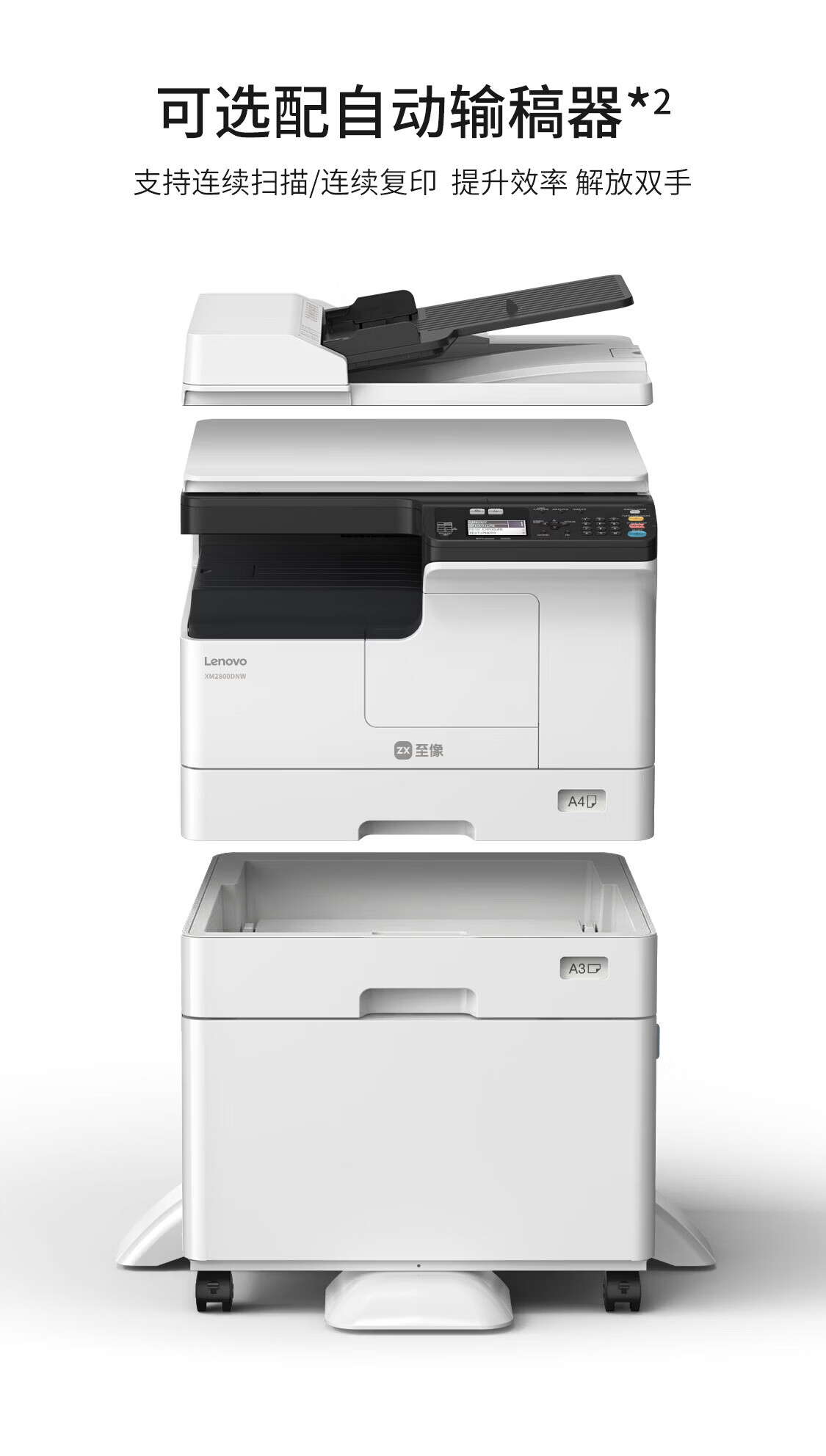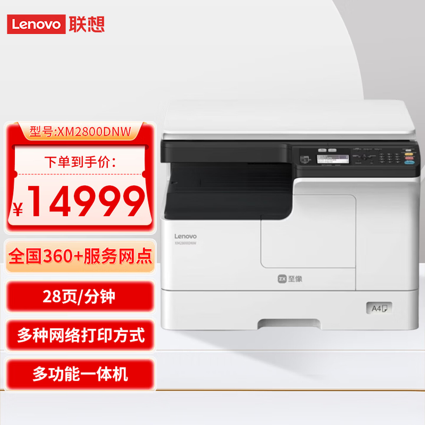 联想(Lenovo)至像A3黑白激光打印机 XM2800DNW 打印复印扫描多功能一体 双面无线不带输稿器不带底座