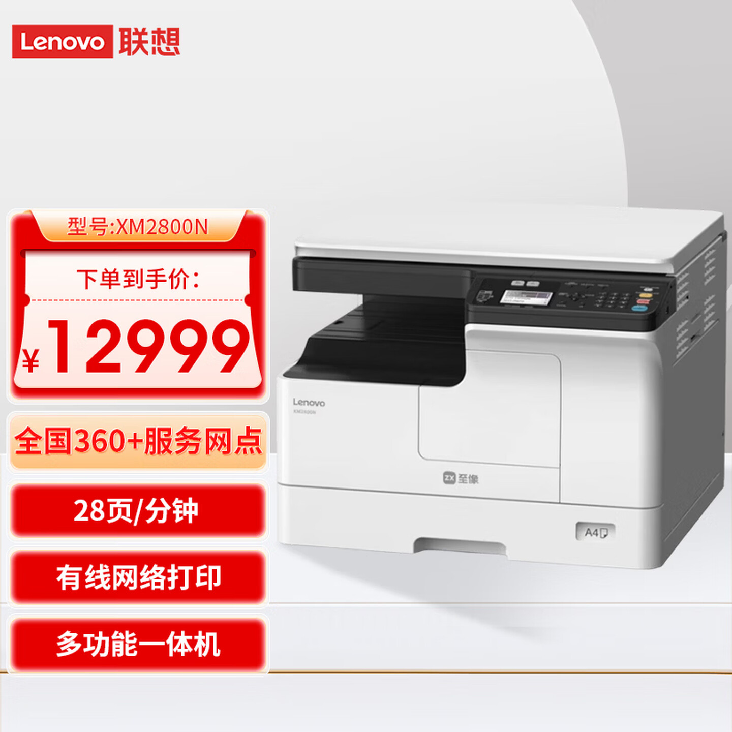 联想(Lenovo)至像A3数码多功能一体机 XM2800N 打印机 打印复印扫描多功能一体机不带输稿器和底座